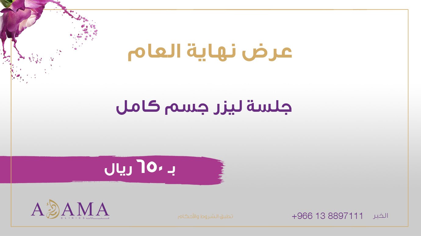 مستشفى أدمة On Twitter عرض نهاية العام جلسة ليزر إزالة الشعر لكامل الجسم بـ 650 ريال بس العرض متوفر في عيادات أدمة بـ الخبر لحجز موعد والاستفسار 0138897111 Https T Co W9dqqpvtyy