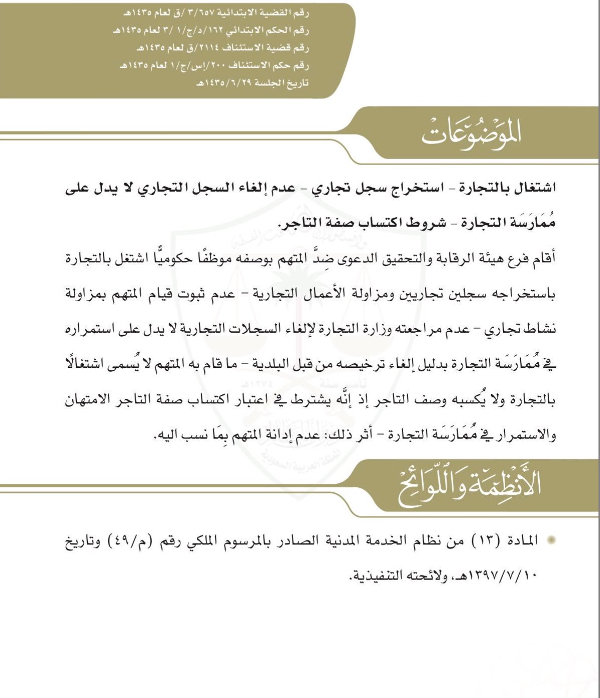 عدالة السعودية On Twitter حكم قضائي استخراج الموظف الحكومي للسجل التجاري لا يعد اشتغالا بالتجارة يعتبر في اكتساب اكتساب صفة التاجر الامتهان والاستمرار في التجارة Https T Co 3tu5fmiwtn